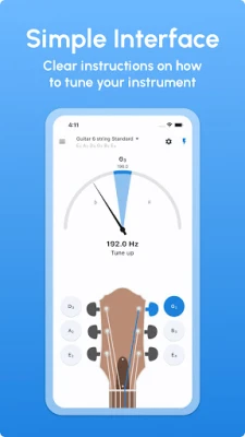Tune the guitar faster with the automatic mode. You can play any note, and we will properly detect it to give you hints on how to tune a guitar.