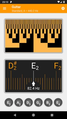 You can also use the tuner to tune by ear. The buttons at the bottom of the screen play the reference tones and you can tune accordingly. The tones are synthesized, and respects the setting of the concert pitch.