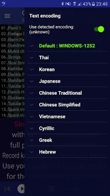 • Play standard MIDI (SMF 0/1, RMI), GM, GS, XG and XF with embedded lyrics and chords