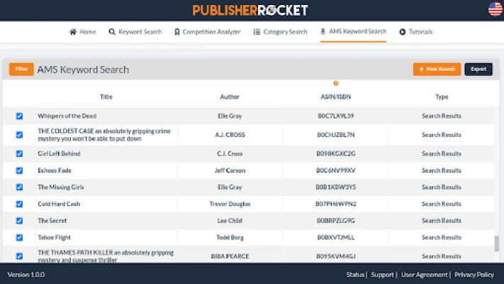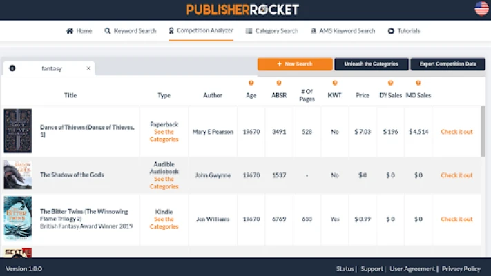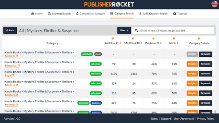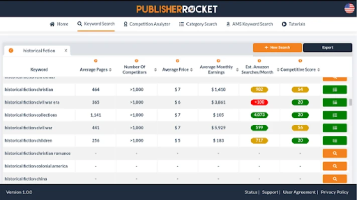 Publisher Rocket will help you get your book in front of more Amazon shoppers so you can spend less time marketing and more time writing. Find profitable keywords that users type into Amazon every month and discover bestselling categories that will help your book reach its target audience. Use Rocket to research the competition, identify historical trends, and generate hundreds of AMS ads keywords.