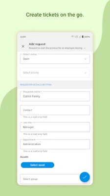 Asset management: Add, view, and manage your organization’s assets by scanning barcodes or QR codes. Track asset details, raise requests related to assets, and modify asset information on the go.