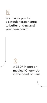 By combining medical & data sciences, Zoī leverages the thousands of datapoints collected during your 360° in-person check-up at our revolutionary experience location to help you understand your body, improve your quality of life, and increase your healthy life expectancy.